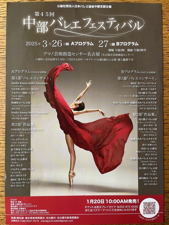 公益社団法人日本バレエ協会中部支部主催『第45回中部バレエフェスティバル』に当バレエ団も参加いたします。